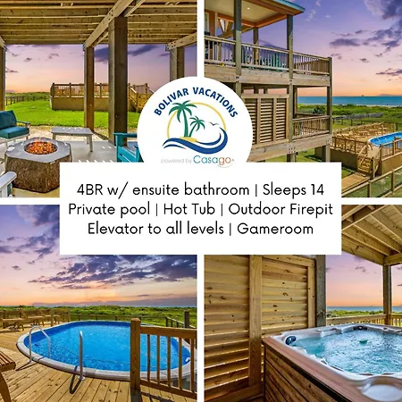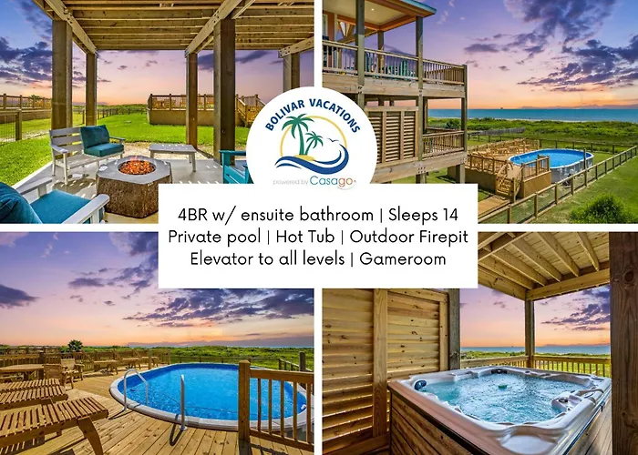 Nestled along the picturesque coastline of Port Bolivar, Wayward Sun Luxury 4Br Gulf Retreat offers an idyllic sanctuary for discerning travelers seeking a blend of relaxation and adventure. This exquisite villa features a captivating décor that combines modern elegance with coastal charm, ensuring that every corner reflects the beauty of its surroundings. Guests can unwind in the lush outdoor space, complete with a shimmering private pool and rejuvenating hot tub, perfect for soaking under the warm Texas sun. The accommodations at Wayward Sun Luxury 4Br Gulf Retreat W Pool, Hot Tub & Elevator are thoughtfully designed to cater to families and groups, boasting four spacious bedrooms that comfortably sleep up to ten guests. Each room is adorned with plush furnishings and stunning views, creating a soothing retreat for rest and relaxation. Guests can enjoy the convenience of the villa's elevator, offering easy access to all levels, making it accessible for everyone.